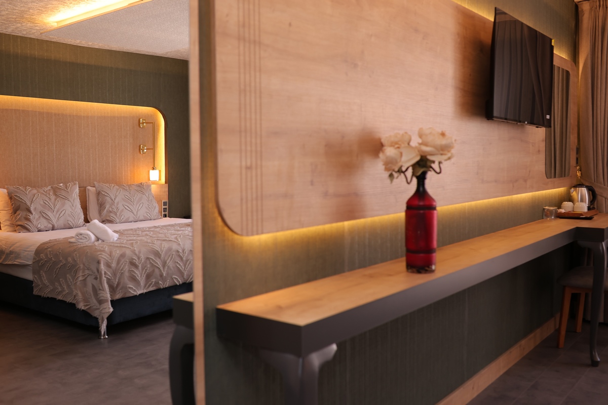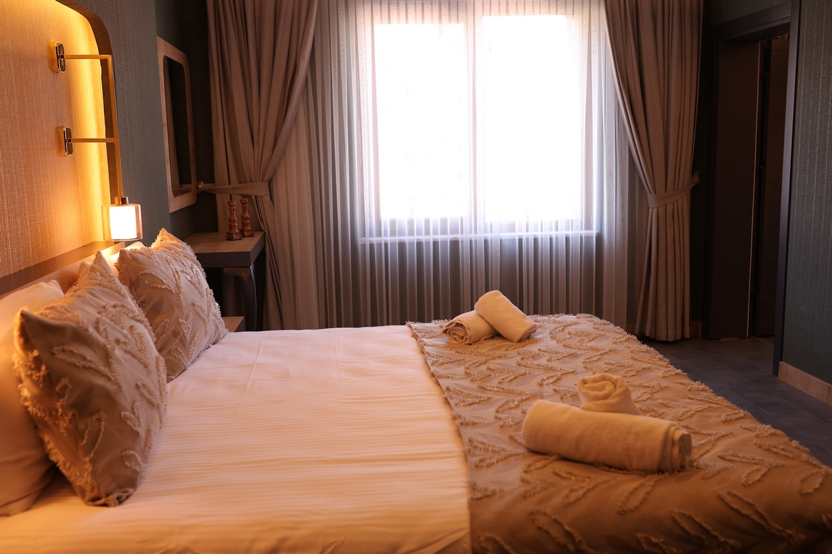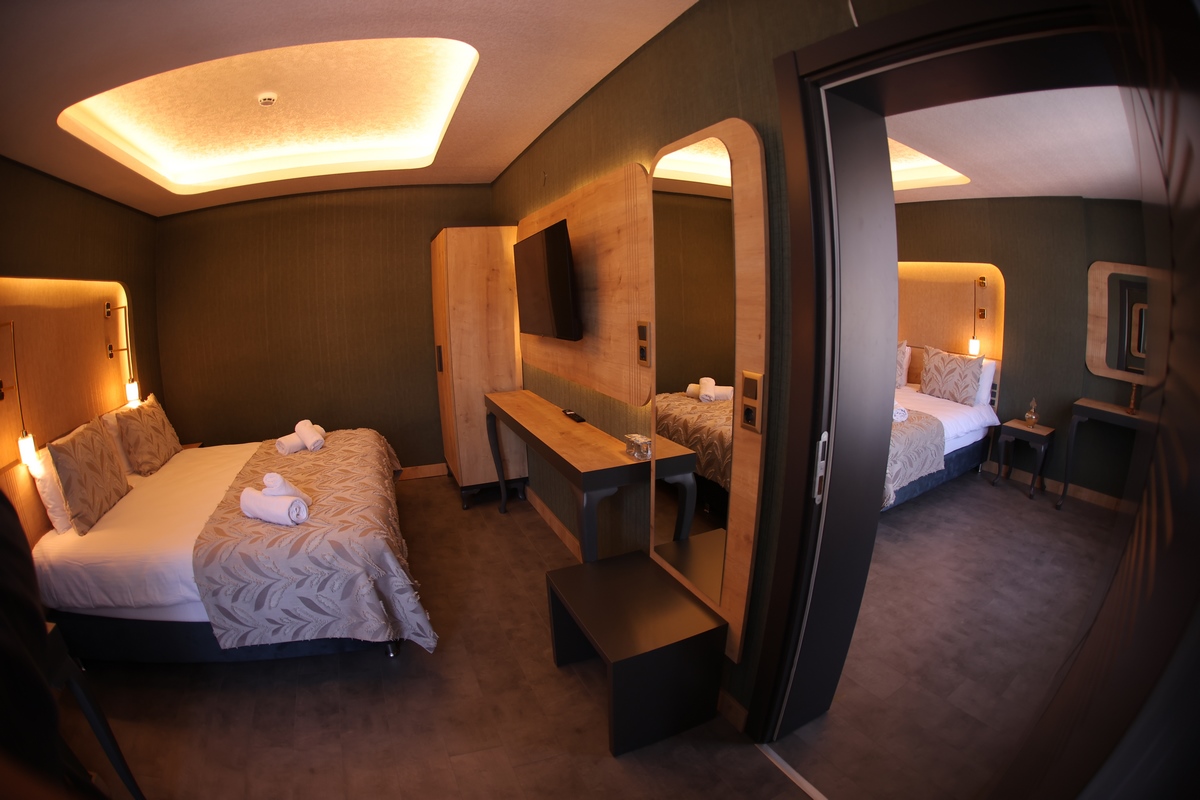 30 m²Odalarımızdaki yatak düzenleri (çift tek kişilik, tek iki kişilik vb.) tercihlerinize göre yapılandırılabilmektedir. Odalarımızda kablolu yayın özelliği bulunan Led TV, minibar, telefon hattı, klima, saç kurutma makinesi, makyaj masası, kablosuz hızlı internet bağlantısı, sıcak su, duşakabin ve banyo malzemeleri bulunmaktadır. Odalarımızda konaklayanlar için 24 saat kesintisiz oda servisi hizmeti bulunmaktadır. Detaylı bilgi için bizimle iletişime geçebilirsiniz.