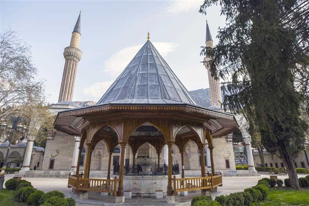 Yan mekânlı ya da zaviyeli cami mimarisinin seçkin örneklerinden biri olan cami, ortada büyük bir kemerle ayrılan iki kare mekânla, doğu ve batı yanlarda üçer kubbeli yan mekânlardan oluşur. Orta mekânı, sekizgen kasnaklarında 16’şar pencere bulunan iki büyük kubbe örter. Kubbe içi ve pencere kemerlerinin üzeri zengin kalem işleri ile süslenmiştir. Ahşap pencere kanatları 15'inci yüzyıl ahşap kündekârî tekniğinin güzel örneklerindendir. Kuzeydeki son cemaat yeri, beş sivri kemerin taşıdığı beş kubbe ile örtülüdür. Son cemaat yerindeki pencere üstleri mavi beyaz çini panolarla süslenmiştir. Buranın iki ucunda yükselen tek şerefeli iki minareden doğudakinin gövdesi dikine yivli, batıdakinin gövdesi ise zikzak taş dekorludur. Caminin mukarnas süslemeli, ihtişamlı taç kapısı üzerindeki üç satırlık mermer kitabe Hattat Ali bin Mezid’in eseridir. Avlu ortasında yer alan 12 kenarlı şadırvan, 12 sütunun taşıdığı, 12 yüzlü sivri piramit bir çatıyla örtülüdür.